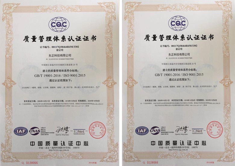 由中國(guó)質(zhì)量認(rèn)證中心 CQC 實(shí)施的 ISO9001 質(zhì)量管理體系,且獲得通過(guò);
