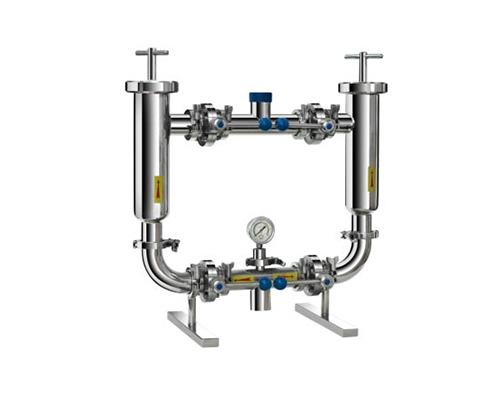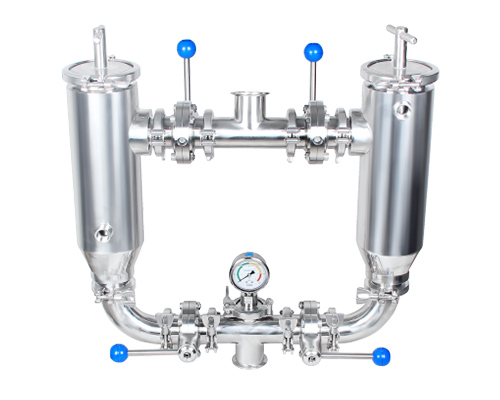 該雙聯(lián)過(guò)濾器適用于去除鮮奶、糖液、飲料等液體中各桶內(nèi)肉眼無(wú)法看見(jiàn)的固體物的凈化。兩只過(guò)濾器交替使用,可不停機(jī)更換或洗濾網(wǎng),適用于長(zhǎng)期連續(xù)生產(chǎn)。